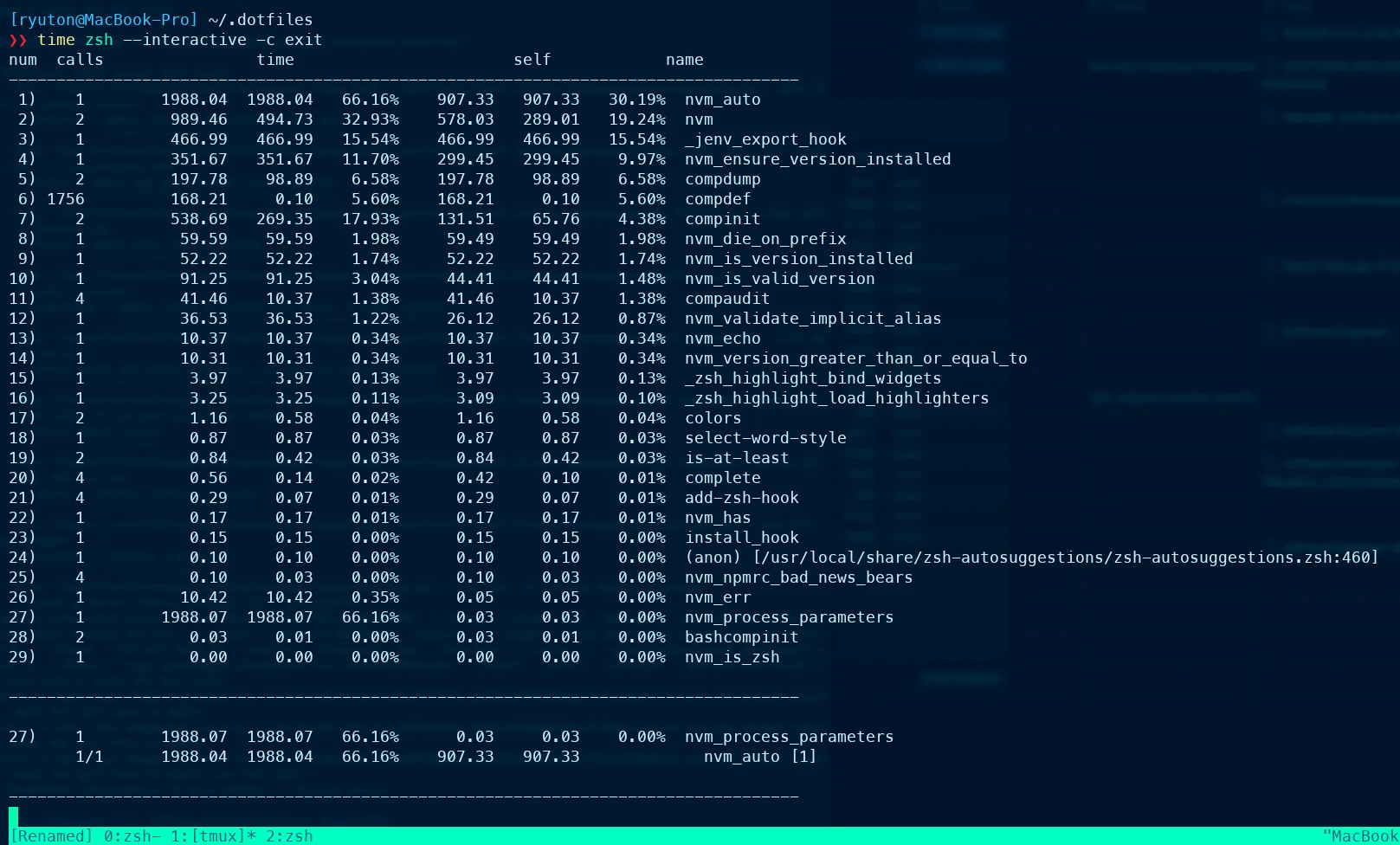 zprofAfter adding these lines, open a new terminal session. You’ll see a detailed report showing which functions and processes are consuming the most time during startup.